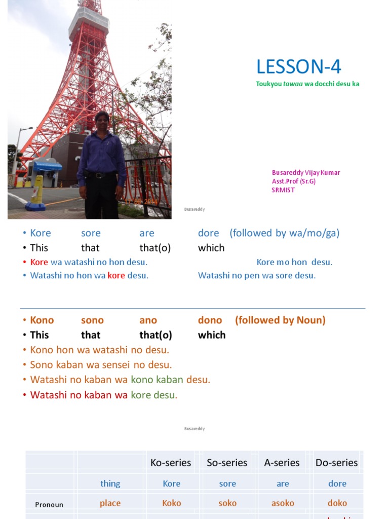 • Watashi no hon wa kore desu. Watashi no pen wa sore desu.