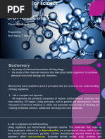 Biochemistry is the study of the compounds, chemical reactions, and molecular