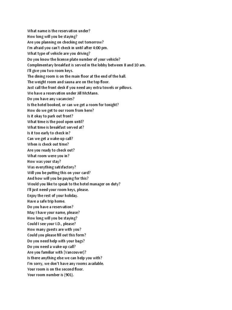 Receptionist: — How long will you be staying?