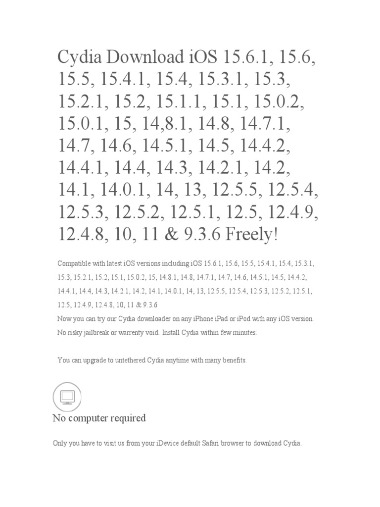 1. Visit: www.cydiafree.com using your Safari browser of your iDevice.