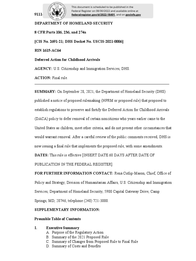 DACA Policy Final Rule Update