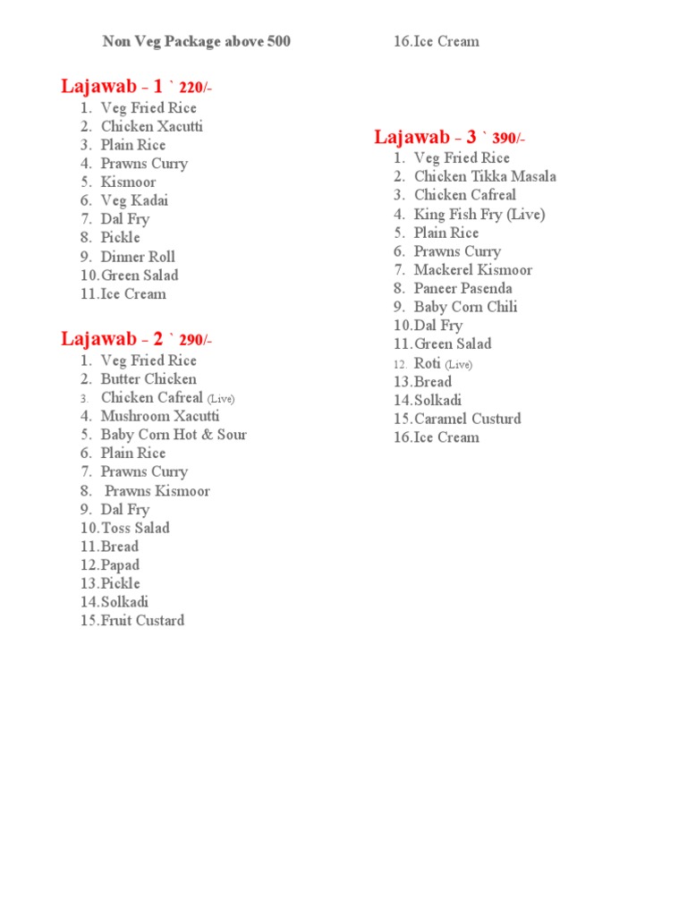 3. Chicken Cafreal (Live) 2. Murg Nilgiri Korma