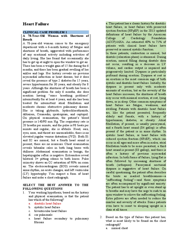 CLINICAL CASE PROBLEM 1 ejection fraction (HFpEF) in the 2013 updated
