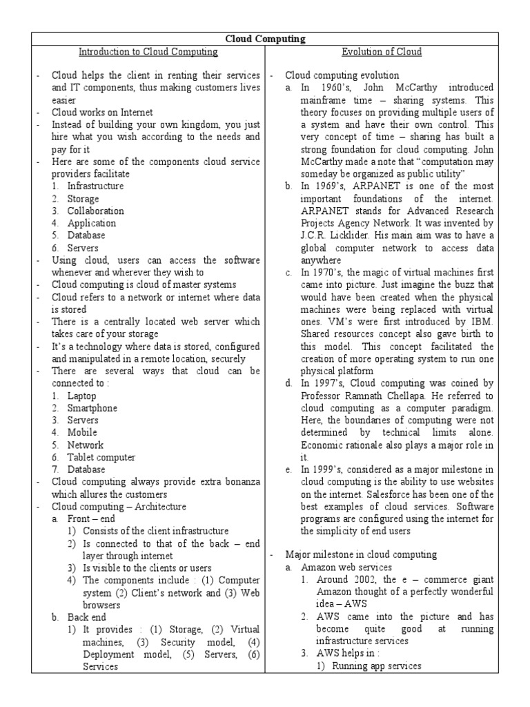 - Here are some of the components cloud service McCarthy made a note that “computation may