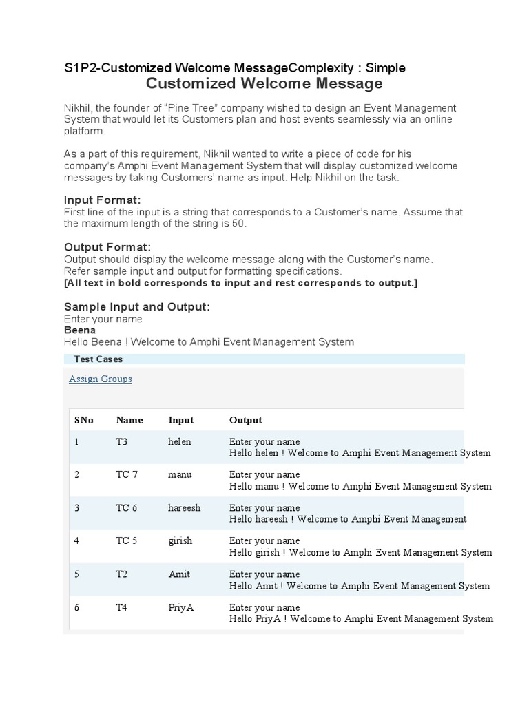 First line of the input is a string that corresponds to a Customer’s name. Assume that