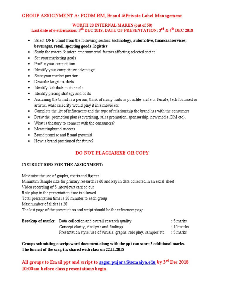 GROUP ASSIGNMENT A: PGDM RM, Brand &Private Label Management