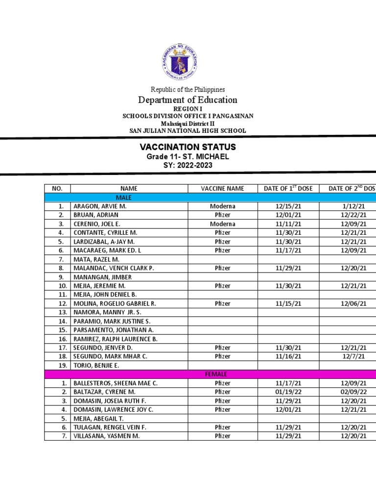 NO. NAME VACCINE NAME DATE OF 1ST DOSE DATE OF 2ND DOSE