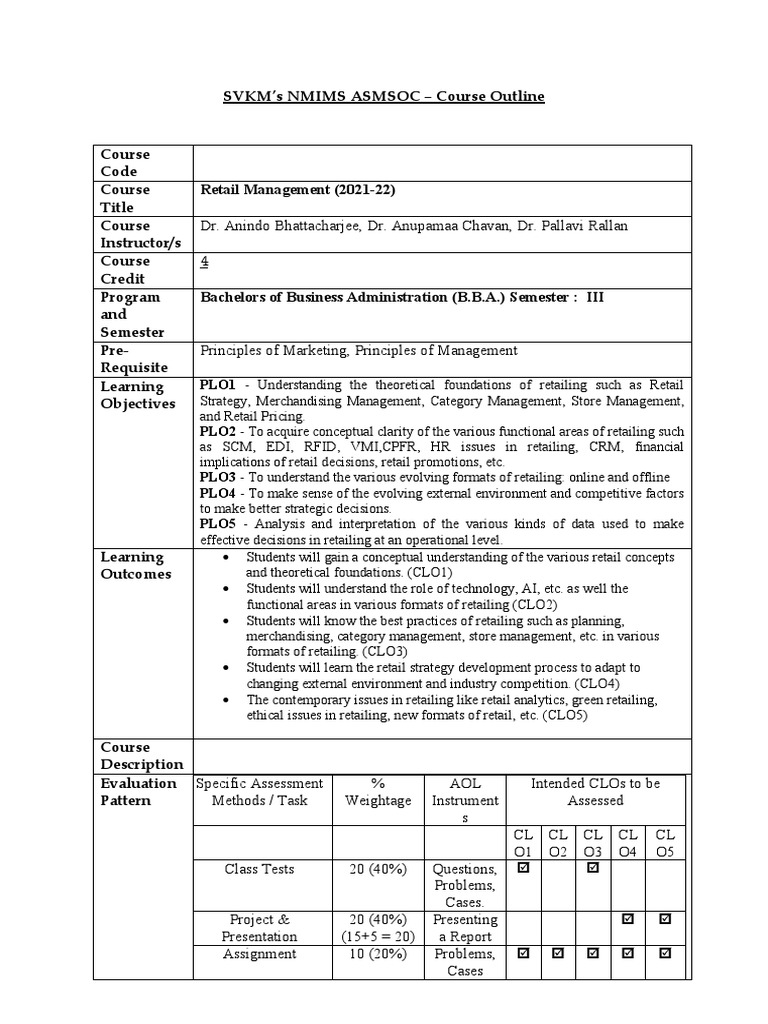 ethical issues in retailing, new formats of retail, etc. (CLO5)