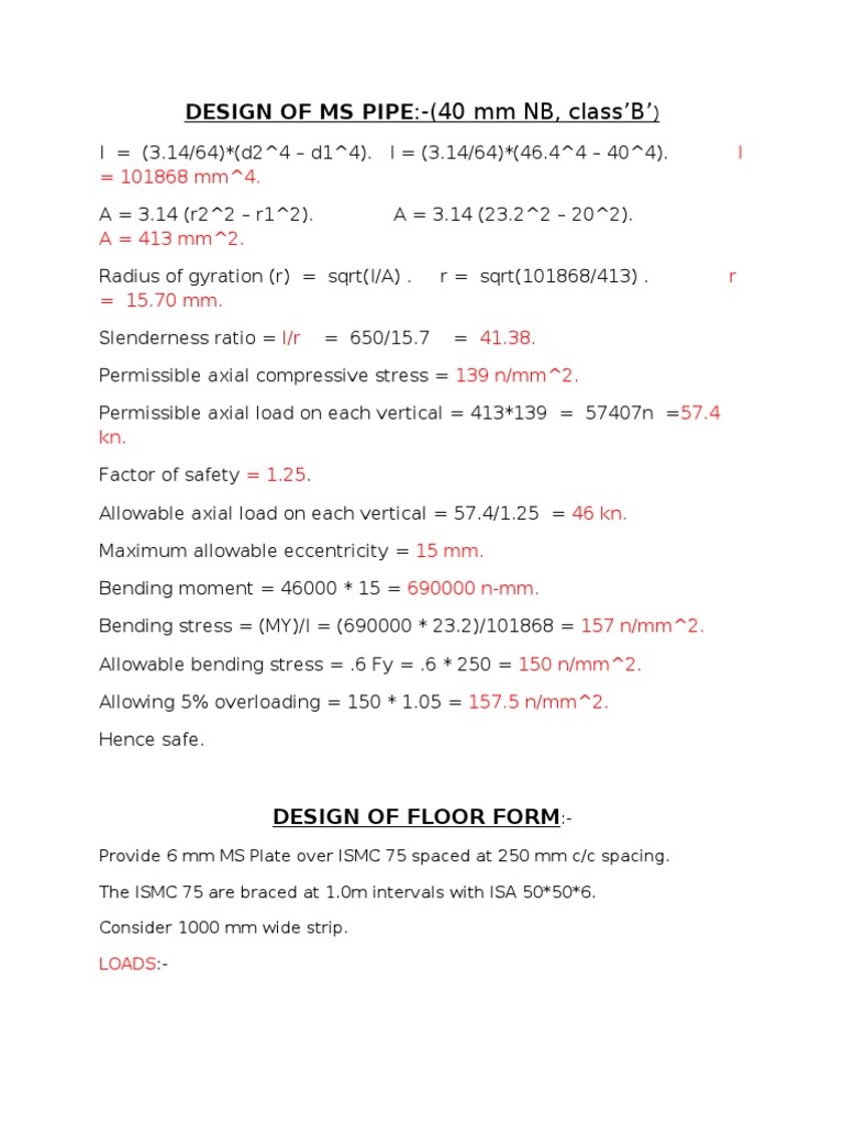 DESIGN OF MS PIPE:-(40 mm NB, classB)