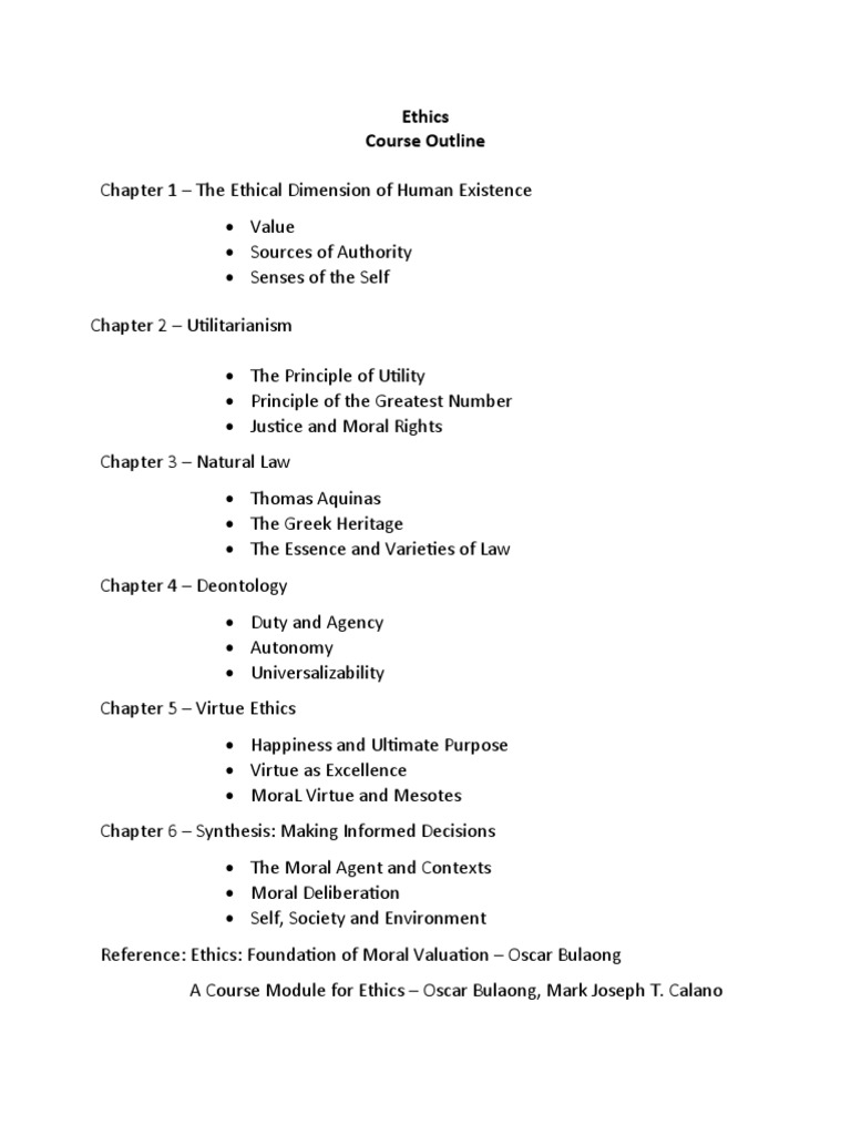 A Course Module for Ethics – Oscar Bulaong, Mark Joseph T. Calano