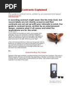 • A “Recording Contract” is the signing over of the rights of the recorded music to a label in order for them to