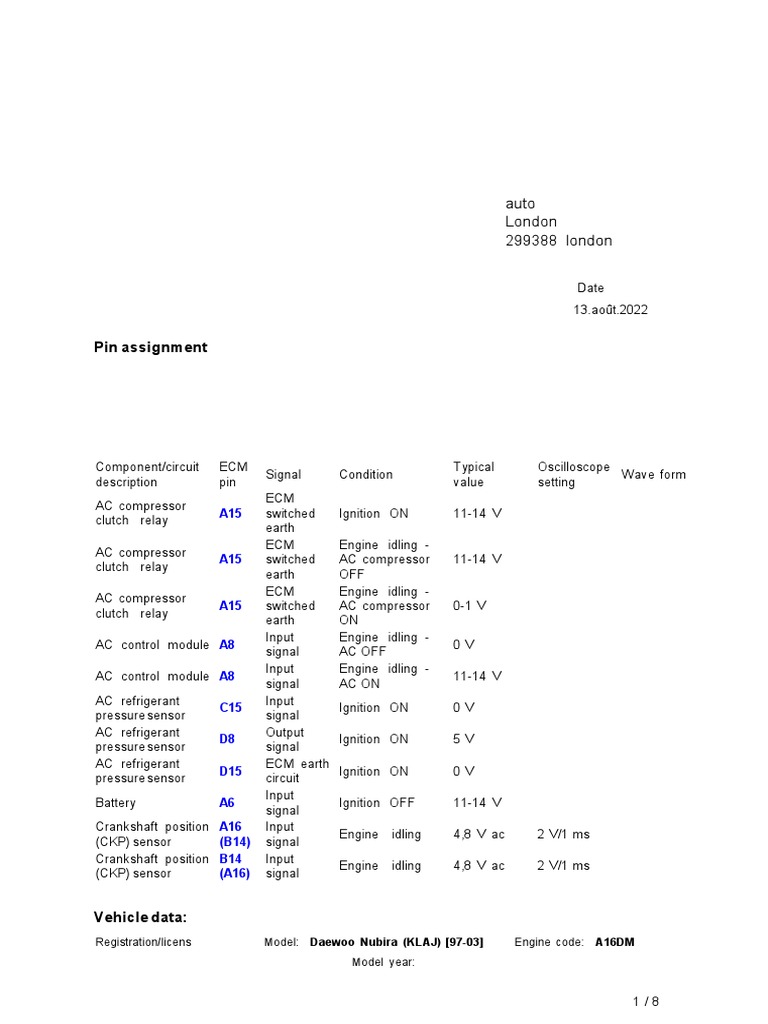 Registration/licens Model: Daewoo Nubira (KLAJ) [97-03] Engine code: A16DM