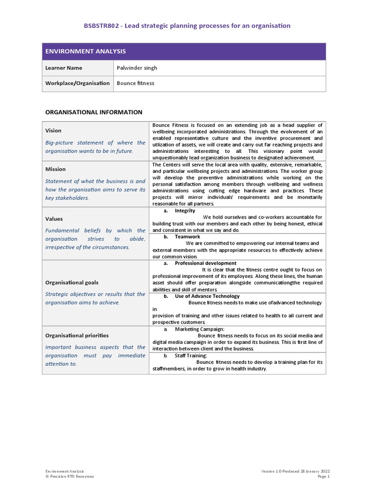 Environment Analysis Version 1.0 Produced 28 January 2022