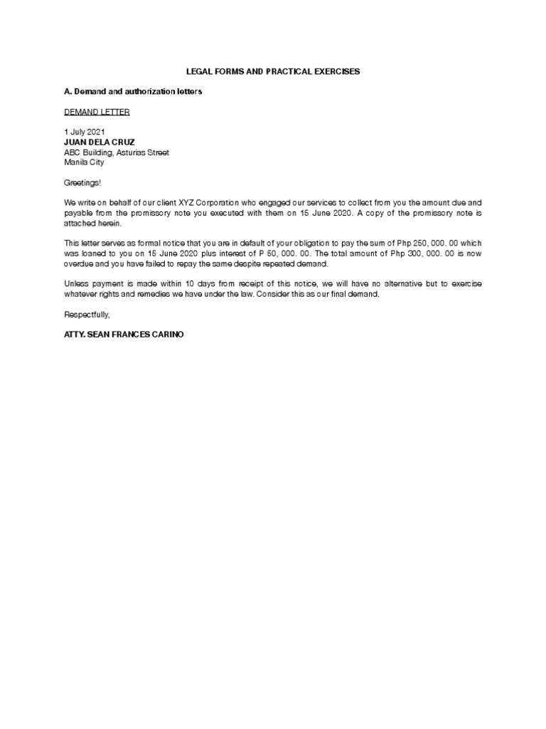 LEGAL FORMS AND PRACTICAL EXERCISES