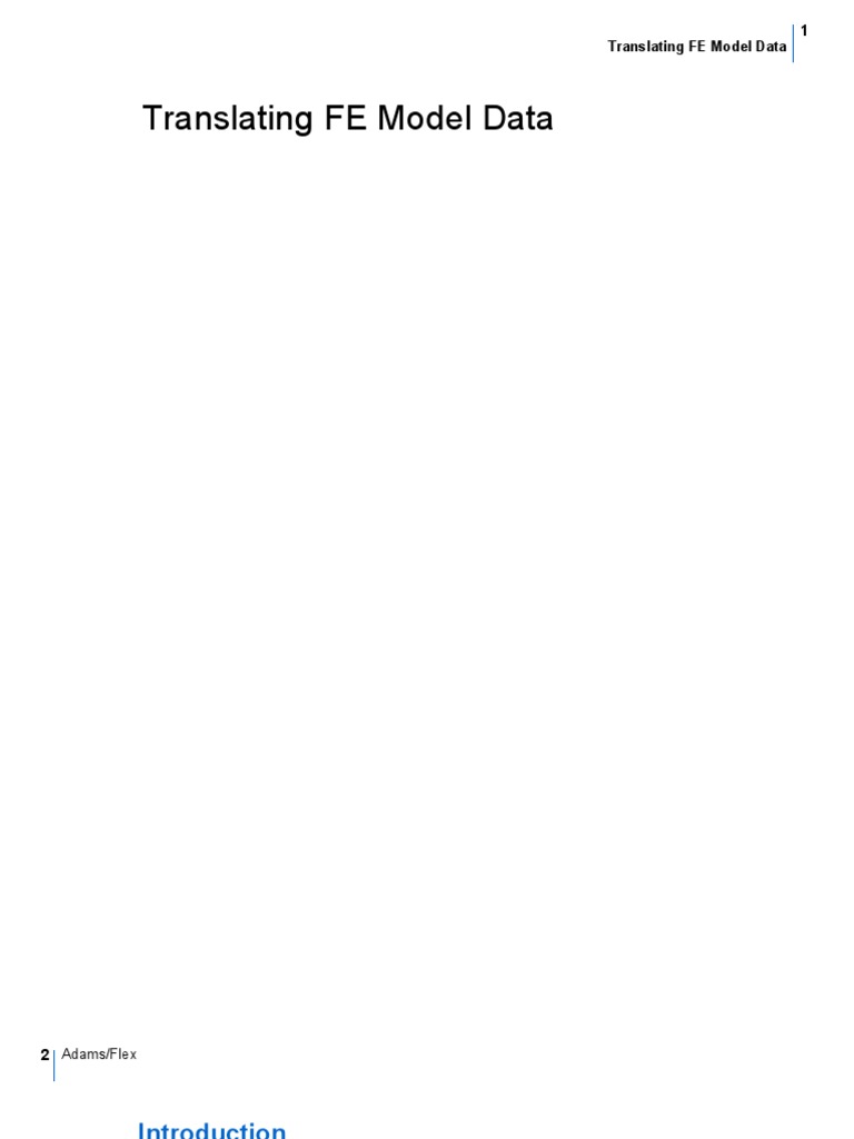 You can use any finite element (FE) model of a component as the foundation for an Adams/Flex flexible body. The following describes aspects of a FE model that you should consider when you transfer it for use in Adams. It starts by listing the vendors that support MNF translation.