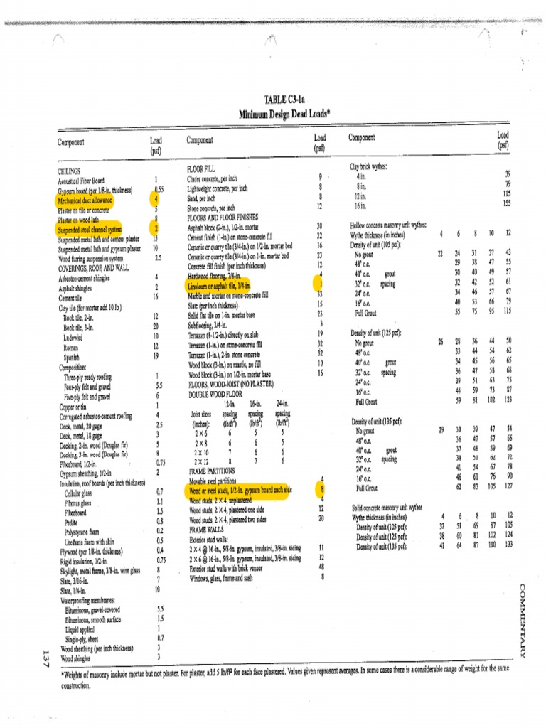 Minimum Design Dead Loads*
