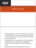 Memos are brief communications within an organization. They typically alert co-workers to a