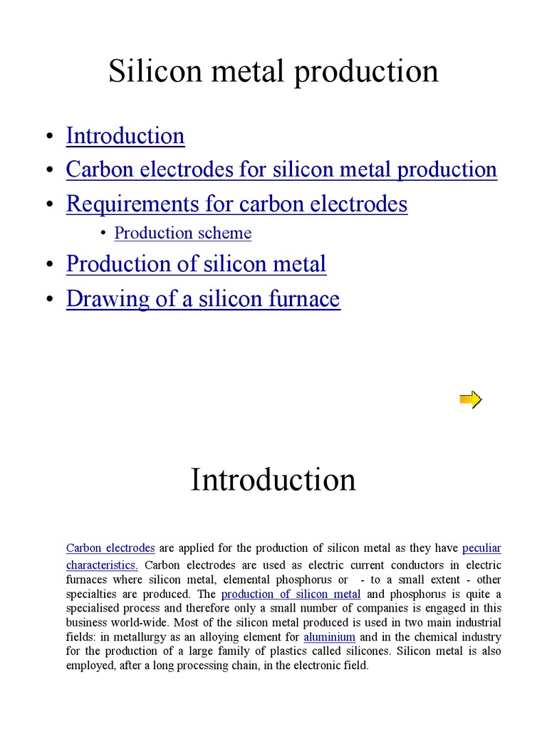 Introduction Carbon electrodes for silicon metal production Requirements for carbon electrodes