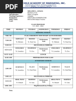 Time Major Parts Specific Activities Person/s-in-Charge