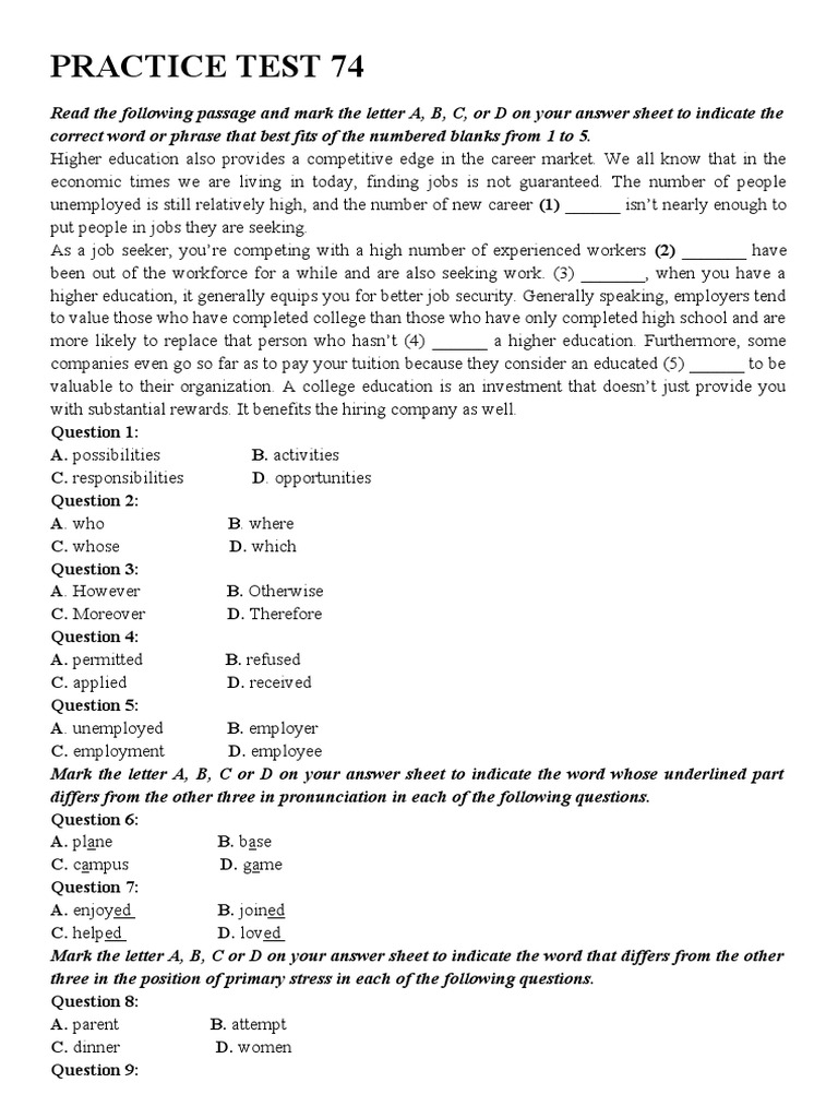 PRACTICE TEST 74