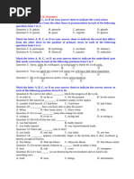 differs from the other three in pronunciation in each of the following questions.