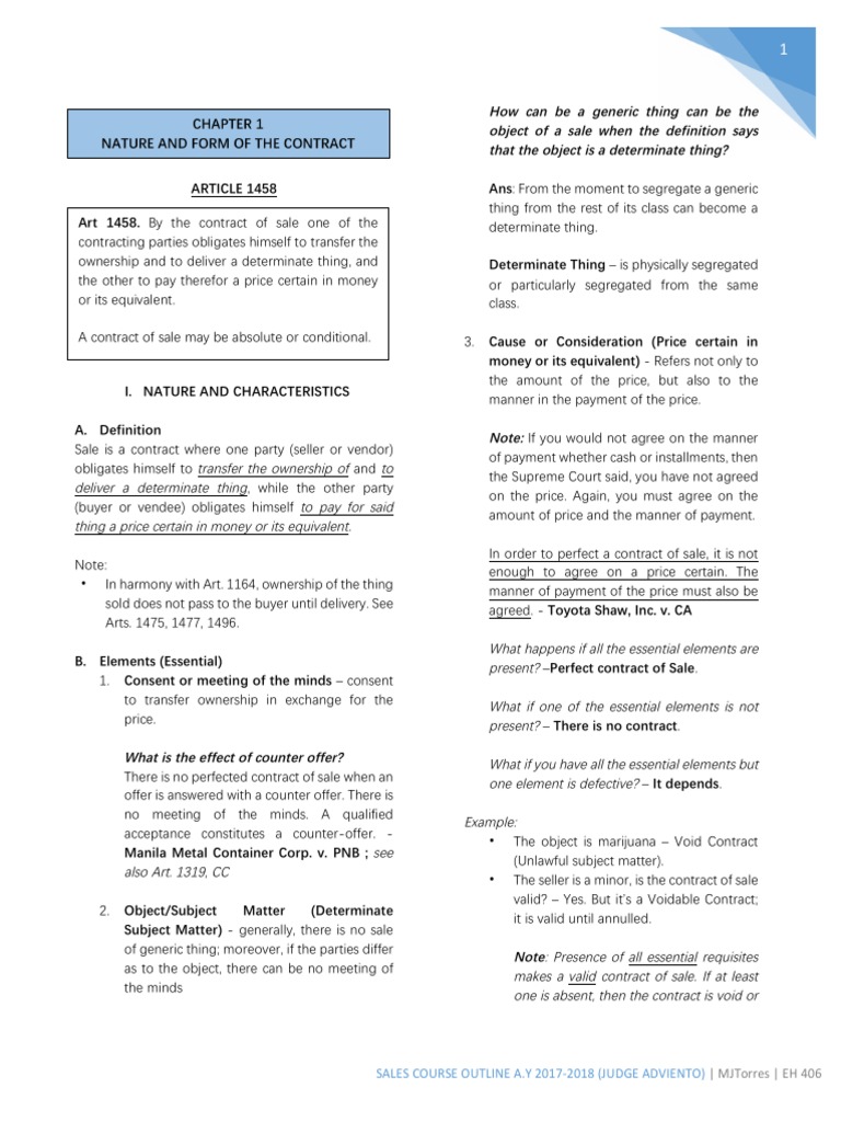 SALES COURSE OUTLINE A.Y 2017-2018 (JUDGE ADVIENTO) | MJTorres | EH 406