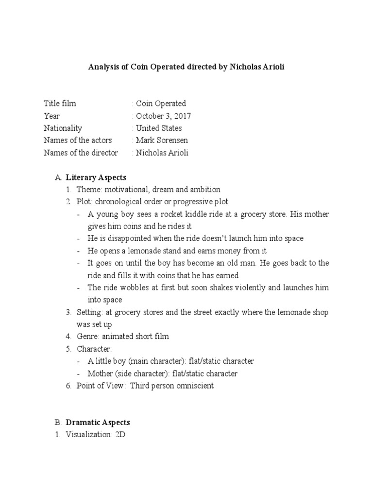 Analysis of Coin Operated directed by Nicholas Arioli
