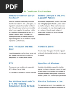 the calculation. If, however there are windows you need to take the size and orientation into account. South Window BTU = South Facing window Length (m) x Width (m) x 870 North Window BTU = North Facing windows Length (m) x Width (m) x 165 If there are no blinds on the windows multiply the result(s) by 1.5. Obviously if you are in the Southern Hemisphere you would swap the conversion factors as the heat on North facing windows is then greatest. Add together all the BTUs for the windows. Windows BTU = South Window(s) BTU + North Window(s) BTU