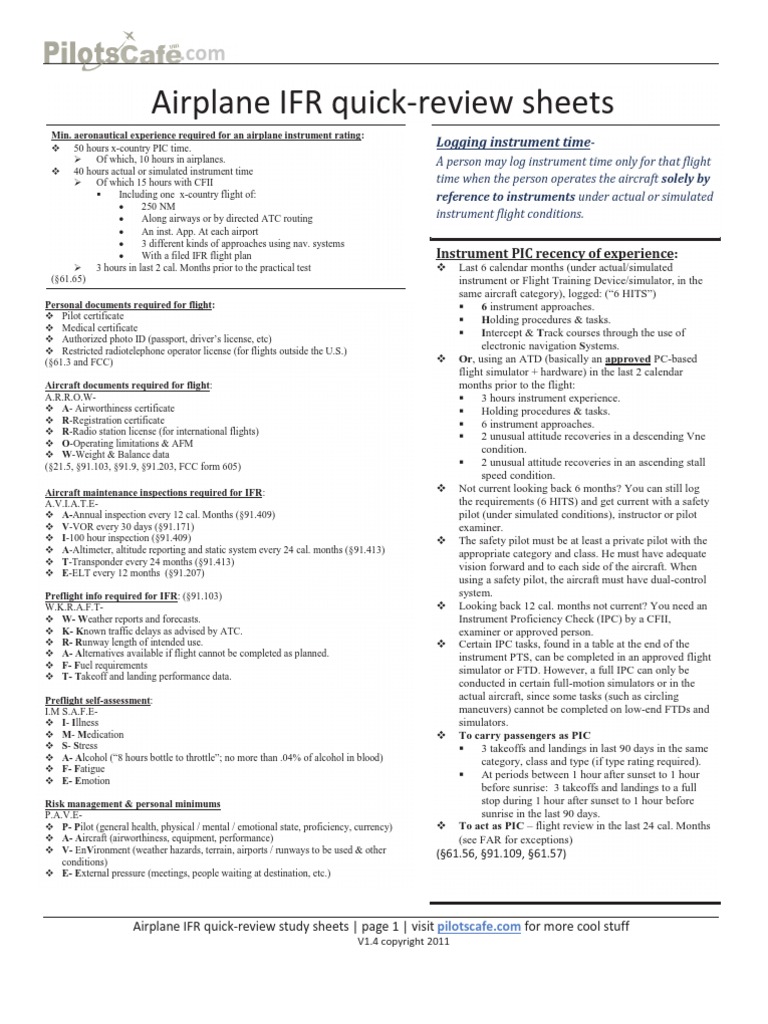 Airplane IFR quick-review study sheets | page 1 | visit pilotscafe.com for more cool stuff