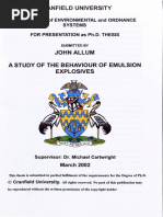 efficiently by bulk ANFO mix trucks. The AN prills are blown out of a tank by means of compressed air, through a nozzle at which fuel oil is added from a separate small tank, and into the blast hole (Figure 3.3). For small operations, a hand-operated concrete mixer can even be used. In large underground mines, special charge-up vehicles are fitted with an AN tank (kettle) and compressed air supply. To distinguish between a mixed ANFO and straight AN, the fuel oil is often coloured blue or pink with a dye. Emulsion blasting agents Components Emulsions are the newest form of commercial explosive and have excellent performance characteristics and flexibility of use. An emulsion blasting agent is a water-in-oil emulsion consisting of a super-saturated solution of microscopic AN droplets suspended in an oil, wax or paraffin fuel and stabilized with emulsifying agents (figure 3.4). Entrapped air, in the form of either ultra-fine air bubbles, dispersed throughout the emulsion, acts as a sensitizer (Mather 1997). On initiation, the explosive shock wave causes the air bubbles to compress at high speed, thus creating hot spots and causing the emulsion to detonate. The amount of entrapped air controls the sensitivity and can be varied to create a product that is either a high explosive or a blasting agent.
