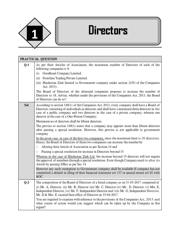 case of a public company and two directors in the case of a private company, whereas one