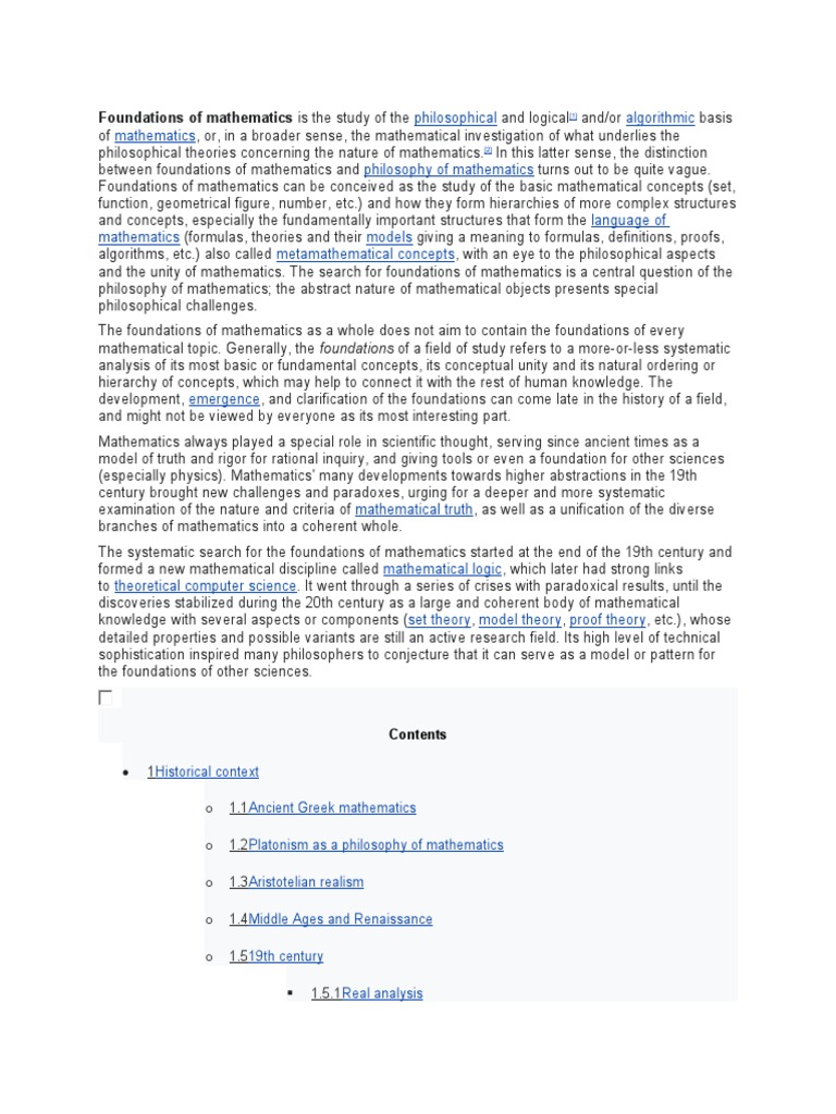 mathematical topic. Generally, the foundations of a field of study refers to a more-or-less systematic