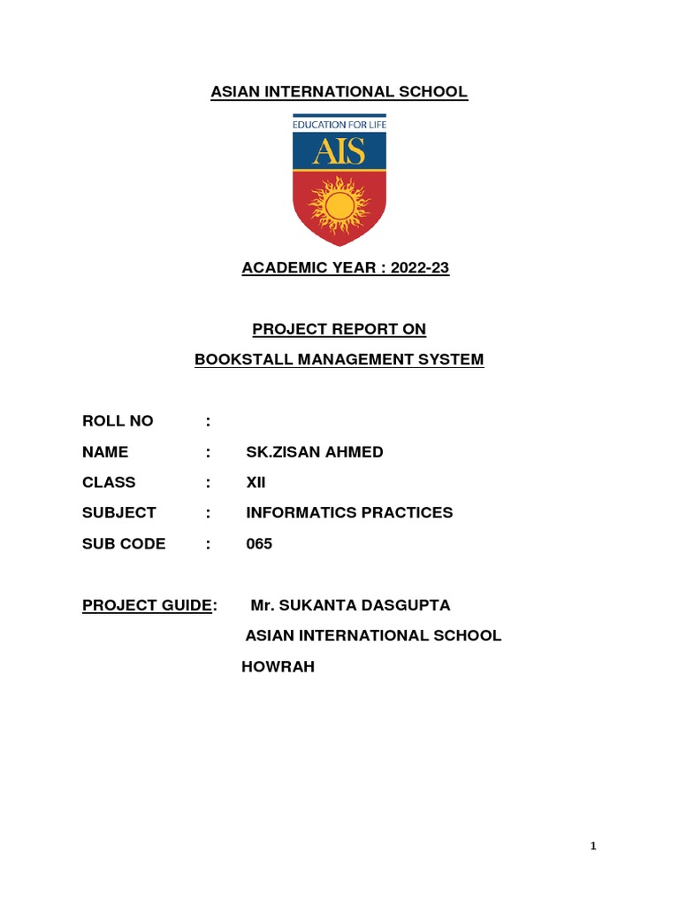 PROJECT ON BOOK STALL MANAGEMENT