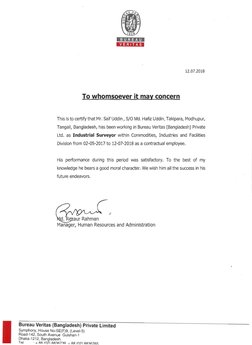 This is to certify that Mr. Md. Saif Uddin, Son of Mr. Md. Hafiz Uddin is working as