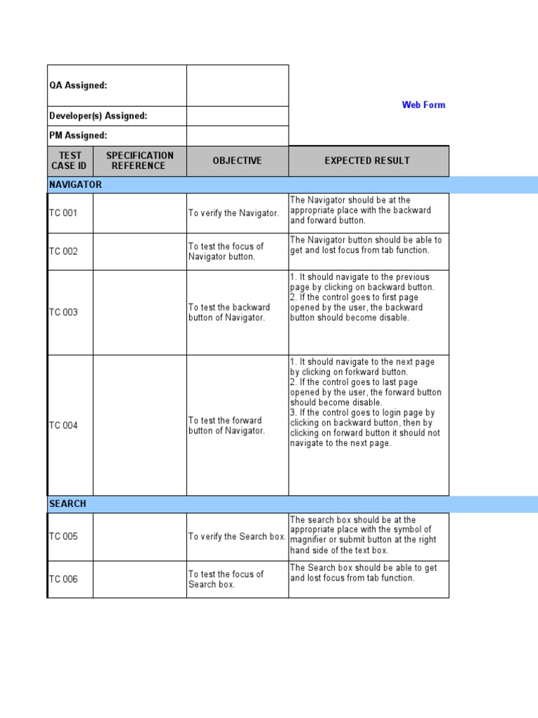 TC 001 To verify the Navigator. appropriate place with the backward