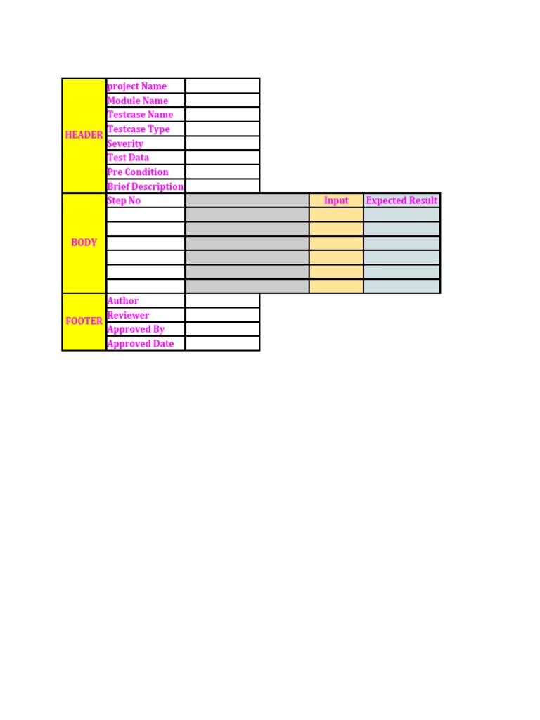 Test Data Pre Condition Brief Description Step No Input