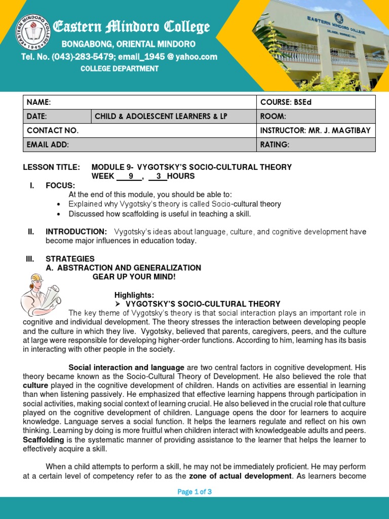 LESSON TITLE: MODULE 9- VYGOTSKY’S SOCIO-CULTURAL THEORY