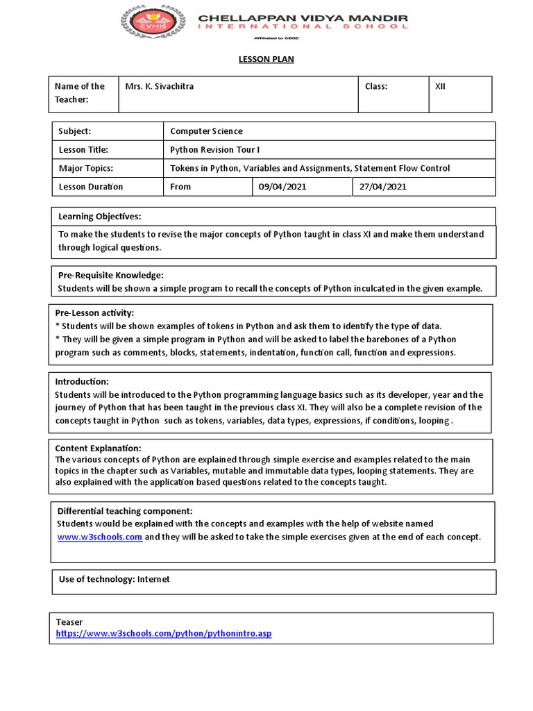 journey of Python that has been taught in the previous class XI. They will also be a complete revision of the