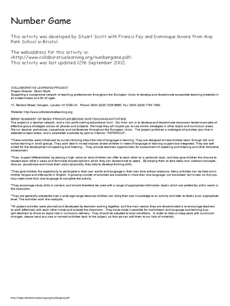 <http://www.collaborativelearning.org/numbergame.pdf