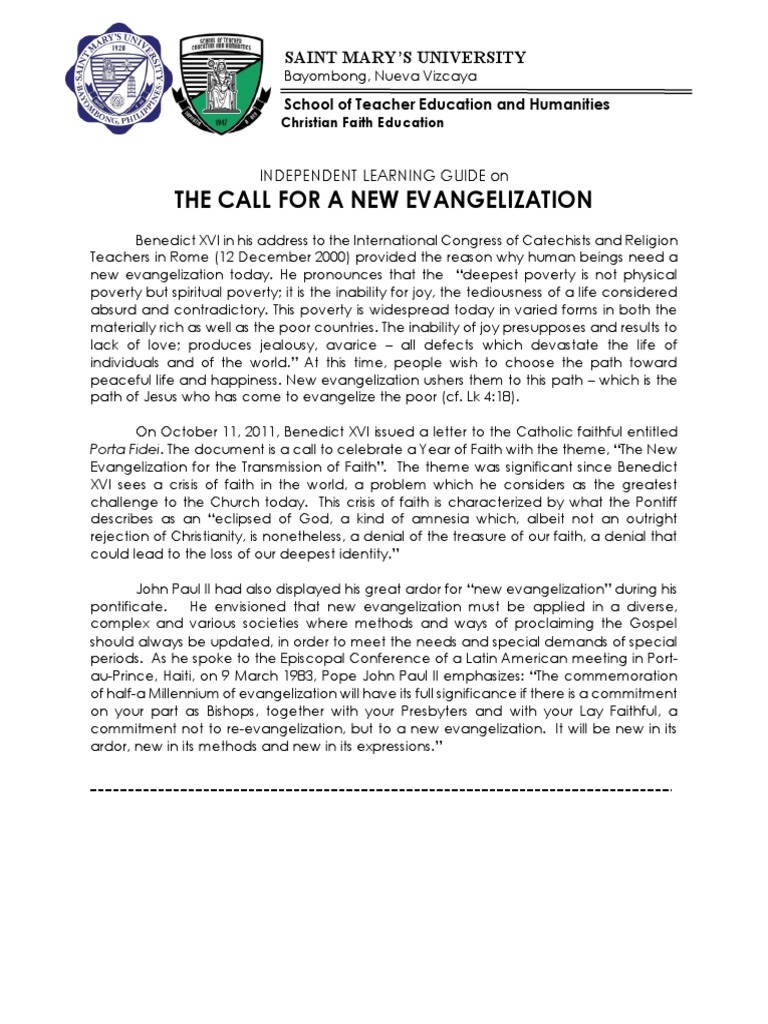 peaceful life and happiness. New evangelization ushers them to this path – which is the