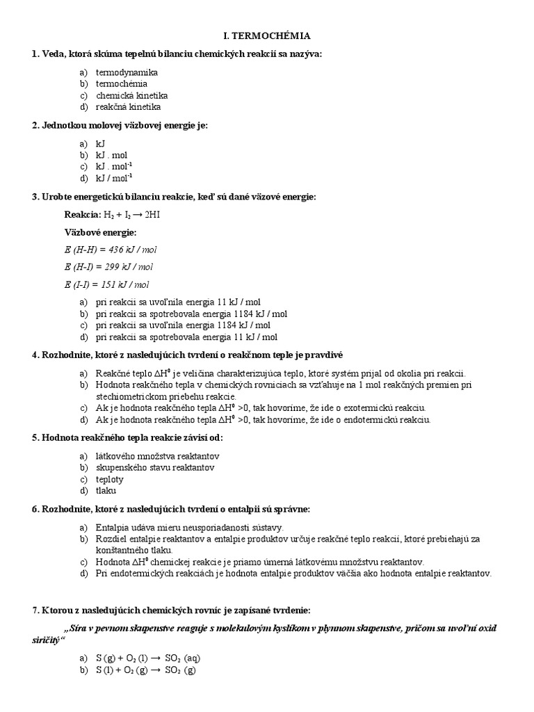 1. Veda, ktorá skúma tepelnú bilanciu chemických reakcií sa nazýva: