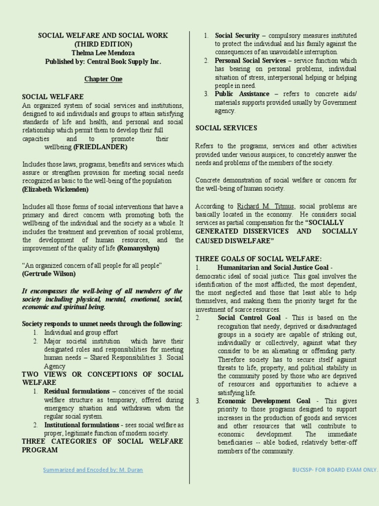 wellbeing of the individual and the society as a whole. It services as partial compensation for the “SOCIALLY