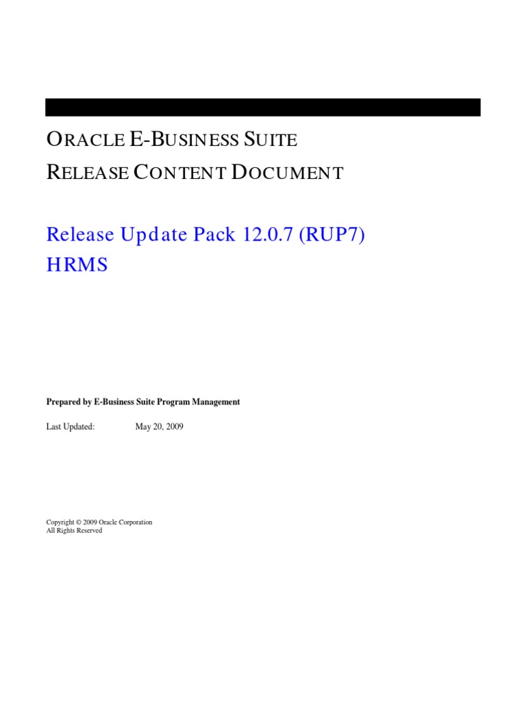 Oracle E-Business Suite Release Content Document, Release Update Pack 12.0.7