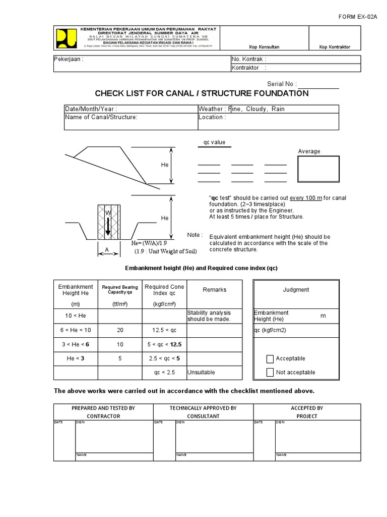 CHECK LIST FOR CANAL / STRUCTURE FOUNDATION