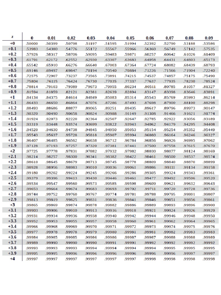 Z-score positive and negative table