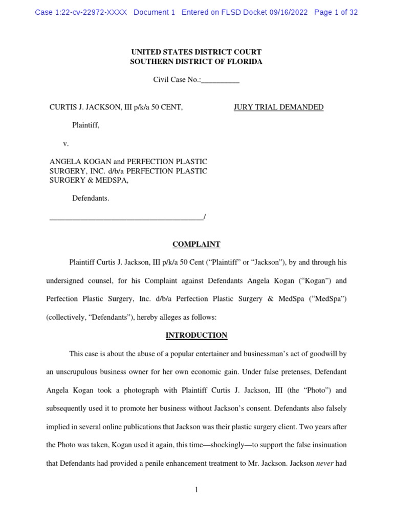 Plaintiff Curtis J. Jackson, III p/k/a 50 Cent (“Plaintiff” or “Jackson”), by and through his