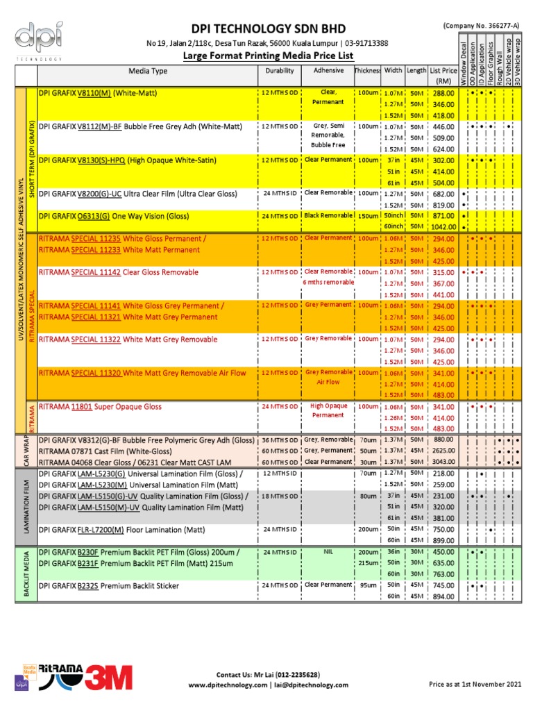 DPI GRAFIX CLG002(C) Car RoadTax Sticker (Cling) OUTDOOR NIL 150um 42in 50M 520.00 ●