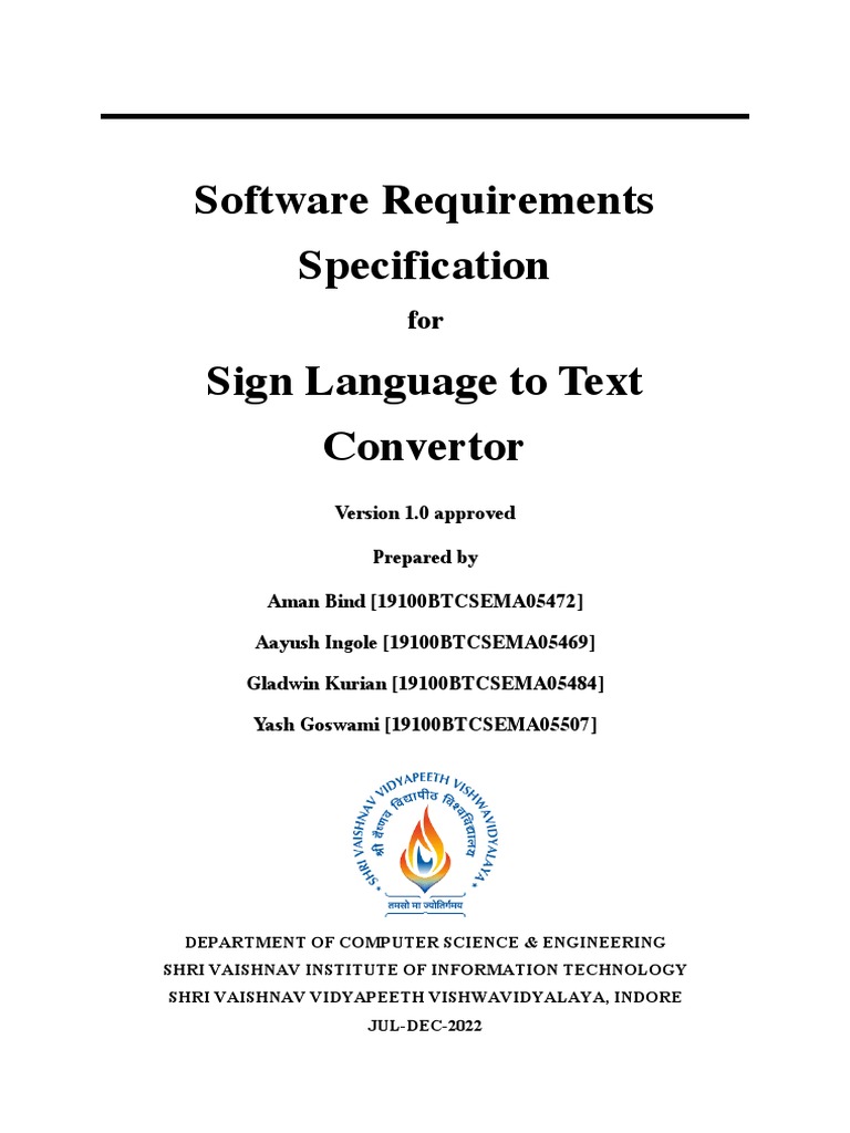 the interface of Sign Language to Text Convertor. It will explain the scenario of the desired
