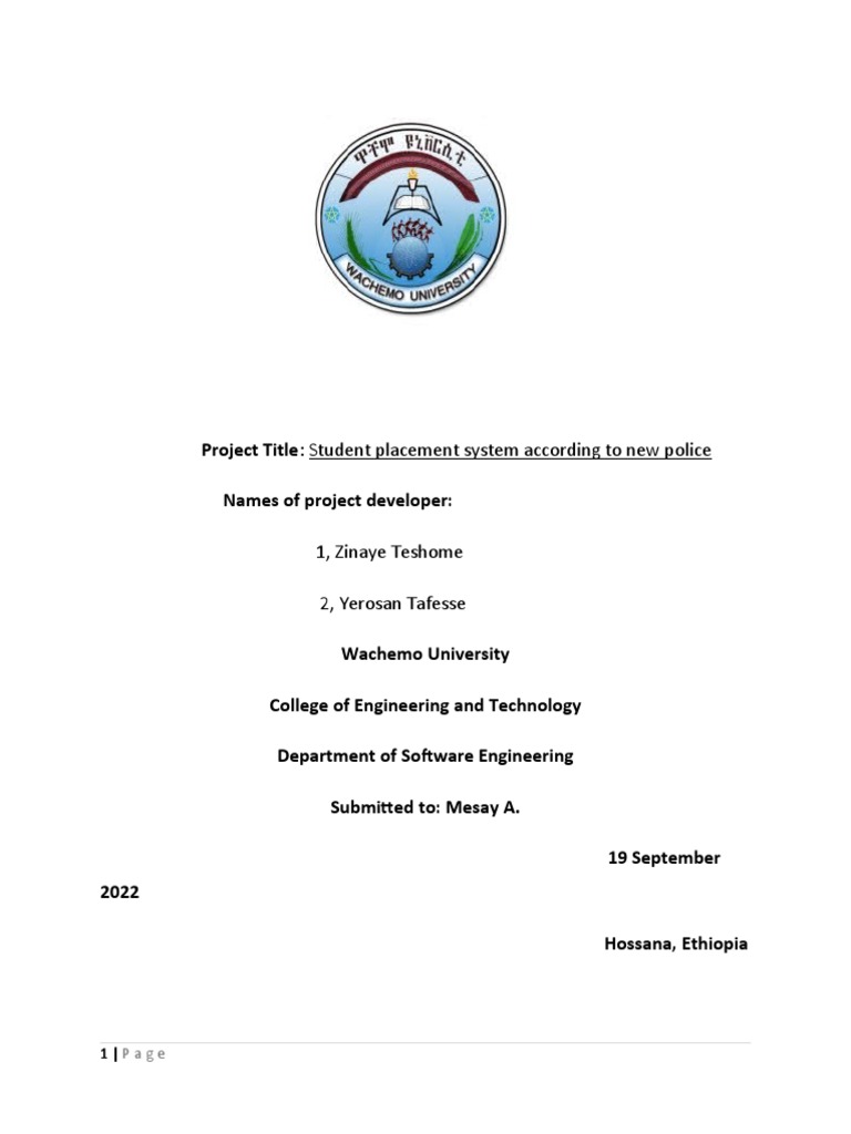 computerized form. wachemo university students choice and placement their