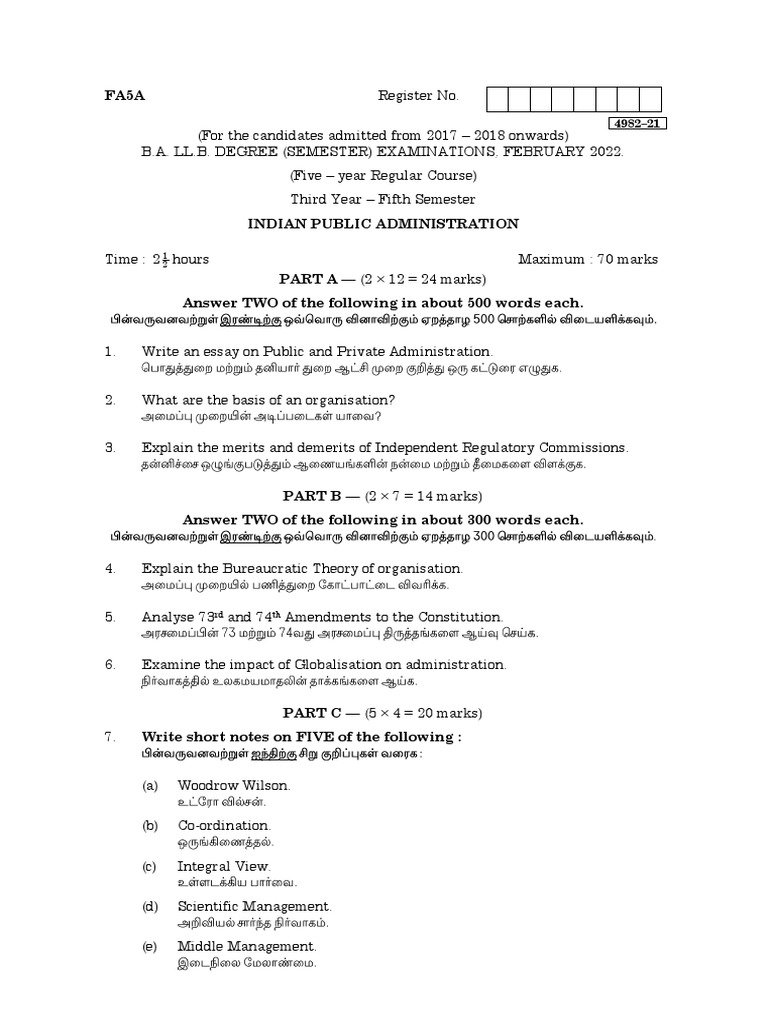 B.A. LL.B. DEGREE (SEMESTER) EXAMINATIONS, FEBRUARY 2022.
